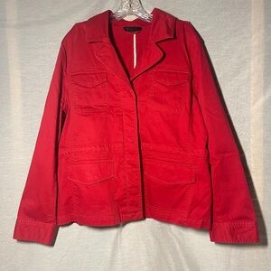 TALBOTS Red Collared Cargo Military Style Utility Jacket. Pockets. Size XL