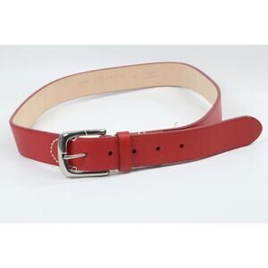 TALBOTS Red Genuine Leather Adjustable Waist Belt Silver Buckle