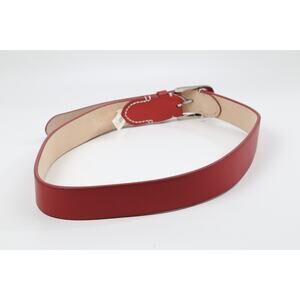 TALBOTS Red Genuine Leather Adjustable Waist Belt Silver Buckle Size M