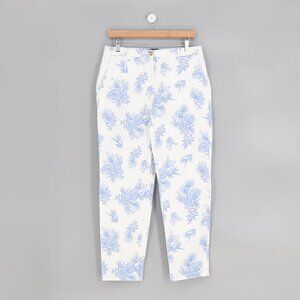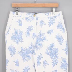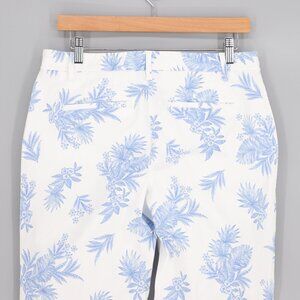 TALBOTS Relaxed Chino Ankle Pant in Ditsy Palm Print Blue White Size 4