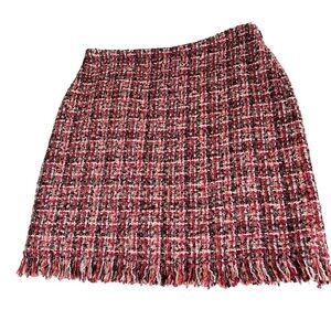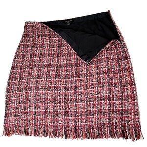 TALBOTS Rose Pink Boucle Tweed Fringe Wool Blend Skirt Women's Size 10P