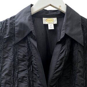 TALBOTS Ruched Shirt Plus Size 20 Womens Black Cotton Top Evening Button Up
