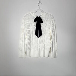 TALBOTS SATIN BOW CABLE KNIT PULLOVER Feminine cabin core holiday party