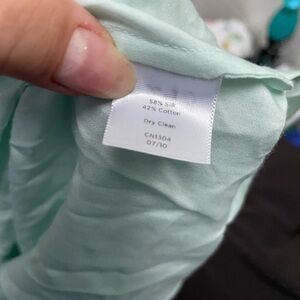 Pre owned. Excellent condition. No signs of wear. 57% silk and 42% cotton. Gorgeous mint green color.