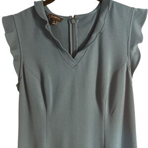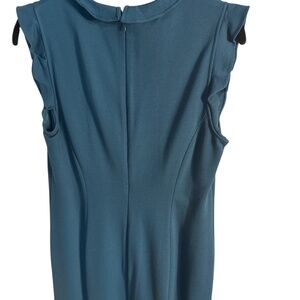 This is a sweet sleeveless dress with a ruffled V-neck and ruffled shoulder. rich material in a great teal color. In excellent like new condition. it has an invisible zipper. Length is about 40" from the top of the back and width is about 17" from pit to pit. Make an offer!