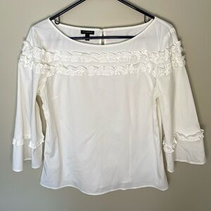 TALBOTS SM White Ruffle Accent Side Zip Pullover Blouse 3/4 Ruffle Top Sleeves
