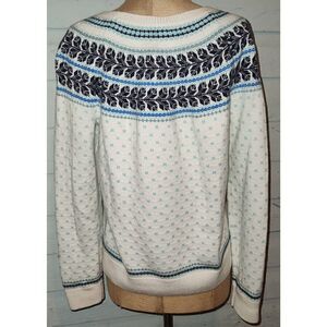 TALBOTS SZ L TULIP NORDIC FAIR ISLE LAMBSWOOL Blend IVORY SWEATER