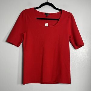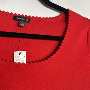TALBOTS Scalloped Hem Puff Sleeve Sweater Size Small Red NEW Classic Modern