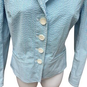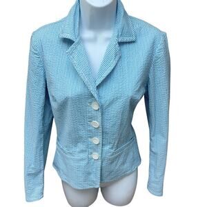 TALBOTS Seersucker Jacket Women's Size 4 Blue White Striped Long Sleeve