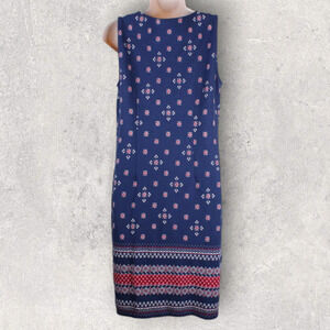 TALBOTS Shift Dress V-neck 100% Cotton in Navy Blue Women's Medium Petite