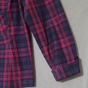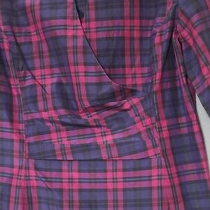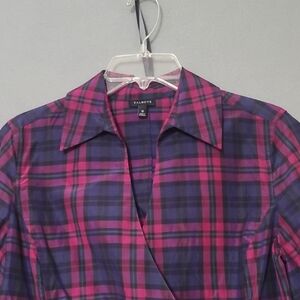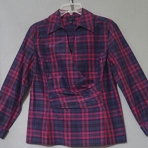TALBOTS Silk Blend Plaid Faux Wrap Long Sleeve Navy Pink Shirt - Size 10