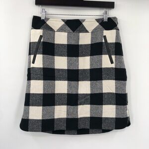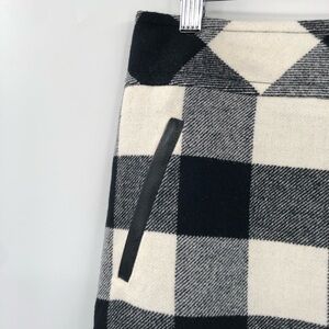 TALBOTS Skirt Buffalo Check Plaid Wool Blend Black White Faux Leather Accents 6