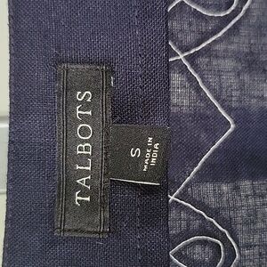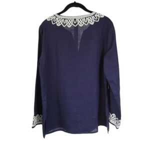 TALBOTS Navy & White Linen Embroidered Small Tunic Top
