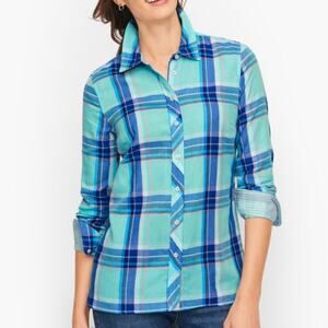TALBOTS Spring Blue and Pink Plaid Cotton Button Front Shirt Size XLP