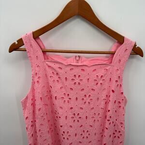 TALBOTS Square Neck Floral Medallion Pink Lace Eyelet Shift Dress // 8