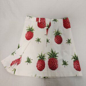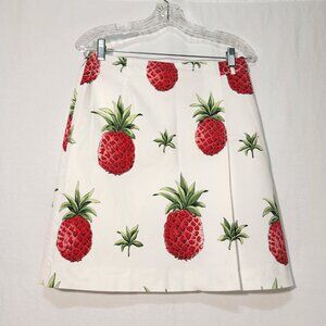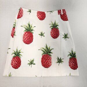 TALBOTS Stretch Preppy Ivory Tropical Pineapple Skirt Size Petites 8 LIKE NEW!