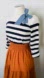 TALBOTS Striped Cotton Top with Blue Bow Navy and Cream Sz Small Petite