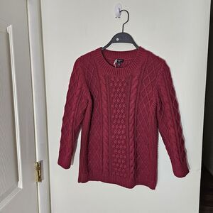 TALBOTS Sweater petite Small Cable Knit Cotton Wool Blend Long Sleeve Pullover Maroon