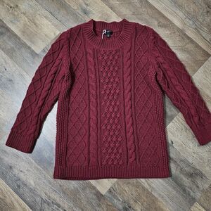 TALBOTS Sweater PS Cable Knit Cotton Wool Blend Long Sleeve Pullover Maroon