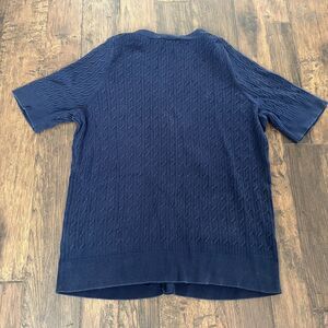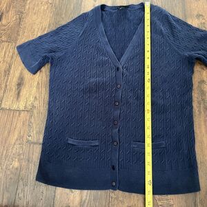 TALBOTS Sweater Women's XL Blue Button-Down Short Sleeve Pima Cotton