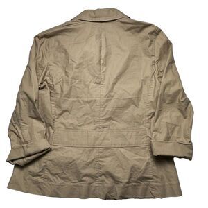 TALBOTS Sz 10 Safari Tan Cotton Jacket Front Pockets Back Waistline Tab military utility jacket good preowned condition has a small stain on the front see pics.