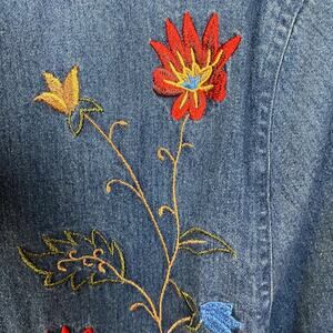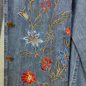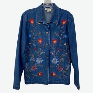 TALBOTS Sz 8 Embroidered Denim Shirt Jacket Boho Floral Jean Metal Buttons