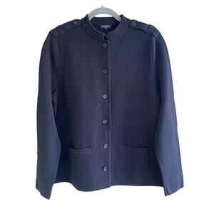TALBOTS Sz L Petite ? Black Knit Blazer Cardigan Jacket Button Front Band Collar