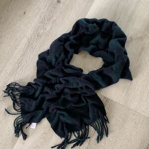 TALBOTS TARTAN 100% CASHMERE SCARF green navy fringe crushed ruched
