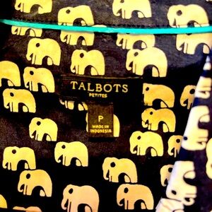 LIKE NEW, LITTLE ELEPHANTS PRINTED ON BLACK BACKGROUND, BUTTON DIWN FRONT, LONG SLEEVES WITH CUFFS, SIZE SP