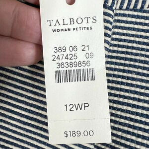 TALBOTS The Jackie Fit Navy/Linen Striped Button Down 4 button Blazer Size 12