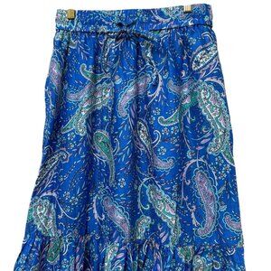 TALBOTS Tiered Midi Skirt Small Petite Blue Paisley Garden Cotton Boho NWT