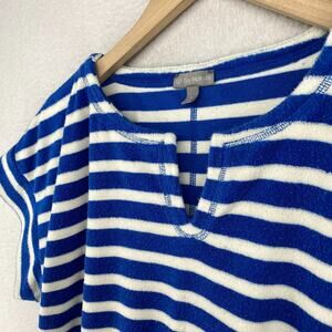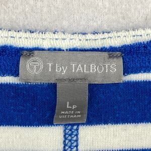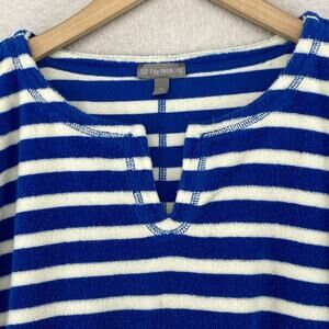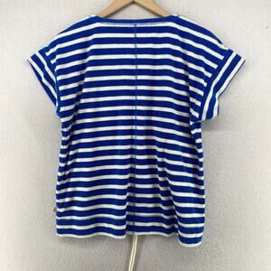 TALBOTS Top PL Petite Terry Valley Striped Split Neck Drawstring Waist Blue