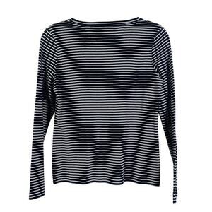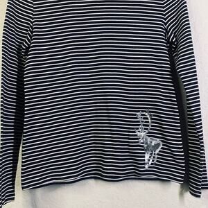 TALBOTS Top Shirt Blouse SP Striped Holiday Sequin Reindeer Crew Neck Prima
