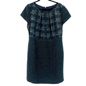 Blue and Green Talbots Tweed Mixed Media Midi Shift Dress