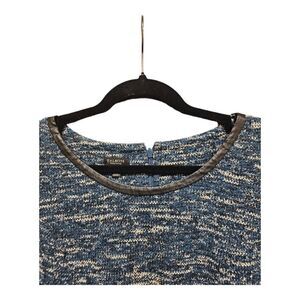 TALBOTS Tweed Knit Fit and Flare Faux Leather Trim Dress - Size 16 Petite