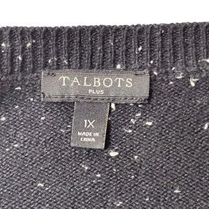 TALBOTS Tweed Side Tie Sweater Dress Size 1X Black White Speckled Long Sleeve