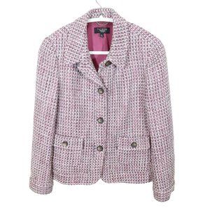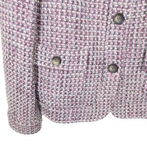 TALBOTS Tweed Wool Blend Button Up Hip Pocket Jacket Size 8p Purple Gray White