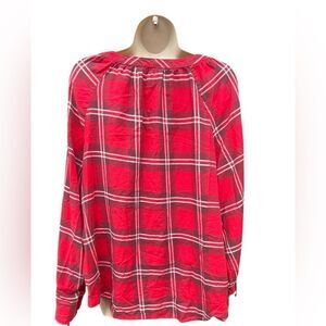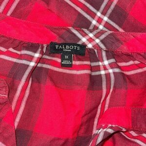 TALBOTS Women's V-Neck Plaid Blouse Red 1X like new condition 100% Cotton Beautiful top