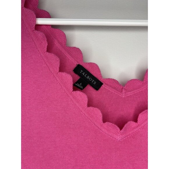 TALBOTS V-Neck Sweater Tank Womens L Pink Scallop Knit Lightweight Stretch