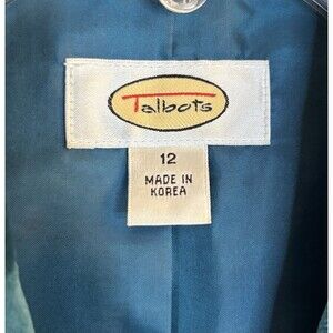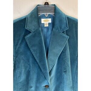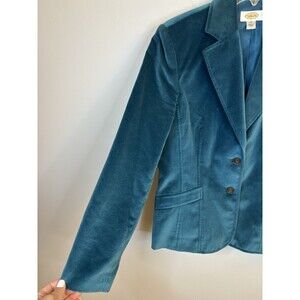 TALBOTS Velvet Blazer Women 12 Teal Jacket Cotton Silk Button Preppy Career