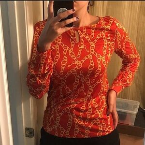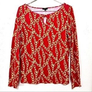 TALBOTS Versace inspired Chain links Print keyhole Blouse womens petite size SP