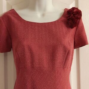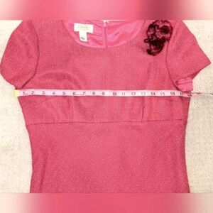 dress Talbots raspberry pink feminine girly tweedy ruffle flower dressy wedding cruise party church structured lined pink raspberry soft rose
