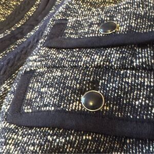 TALBOTS Women Size 4 Navy and White Tweed Braided Trim Jacket Chanel Style lady jacket