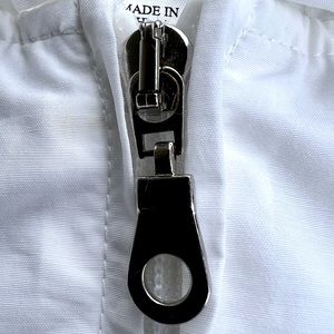 🌺….BRIGHT WHITE…TALBOTS WINDBREAKER JACKET HOODED POCKETS LINED LIGHTWEIGHT. Shell: 60% cotton and 40% nylon. Mesh: 100% polyester. Lining: 100% nylon. Measurements: 24” chest, 25” length, 22” zipper, 23.5” bottom opening and arm vent 3.5”. ***EXCELLENT CONDITION*** Freshly laundered!