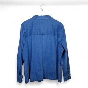TALBOTS WOMAN Denim Shirt Blue 100% Cotton Double Breast Pocket