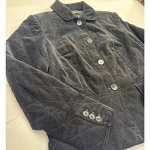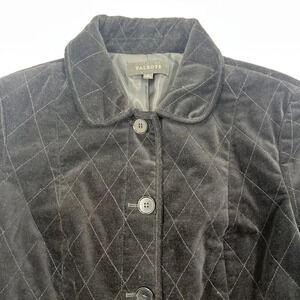 TALBOTS WOMEN'S BLACK VELOUR QUILTED BUTTON-DOWN JACKET SZ 8 Classic Preppy