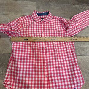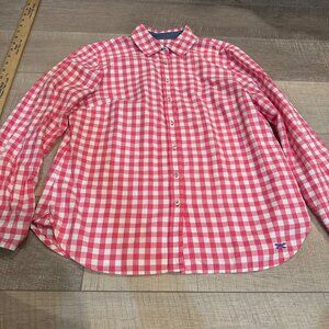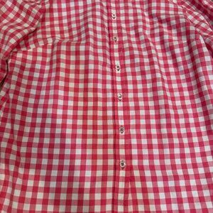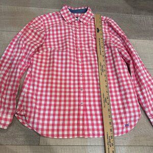 This Talbots women's pink plaid shirt in size small petite is a stylish and feminine addition to any wardrobe. With a classic long sleeve, button-up style, it offers both comfort and a flattering fit for petite women. The pink plaid adds a pop of color and fun to the overall look, making it a versatile piece that can be worn dressed up or down for various occasions. Perfect for those who love classic, timeless fashion with a touch of playfulness.