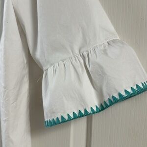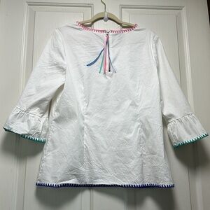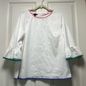 TALBOTS White Poplin Shirt with Embroidery Trim Sz Large