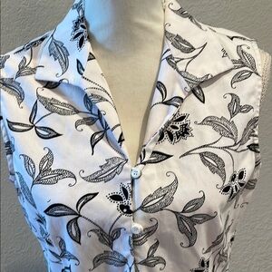 TALBOTS White and Black Sleeveless Fitted Blouse