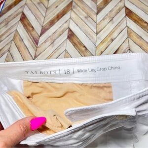 TALBOTS Wide Leg Crop Chino Pants White Cotton Spandex Plus Size Spring Coastal